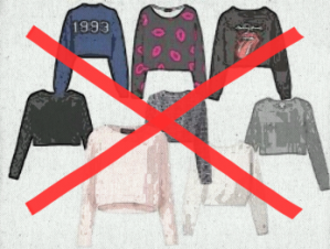 - duksevima ili majicama sa neprimerenim natpisima ili slikama